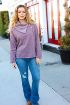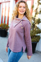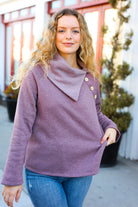 Tried And True Mauve Cowl Neck Button Detail Sweater