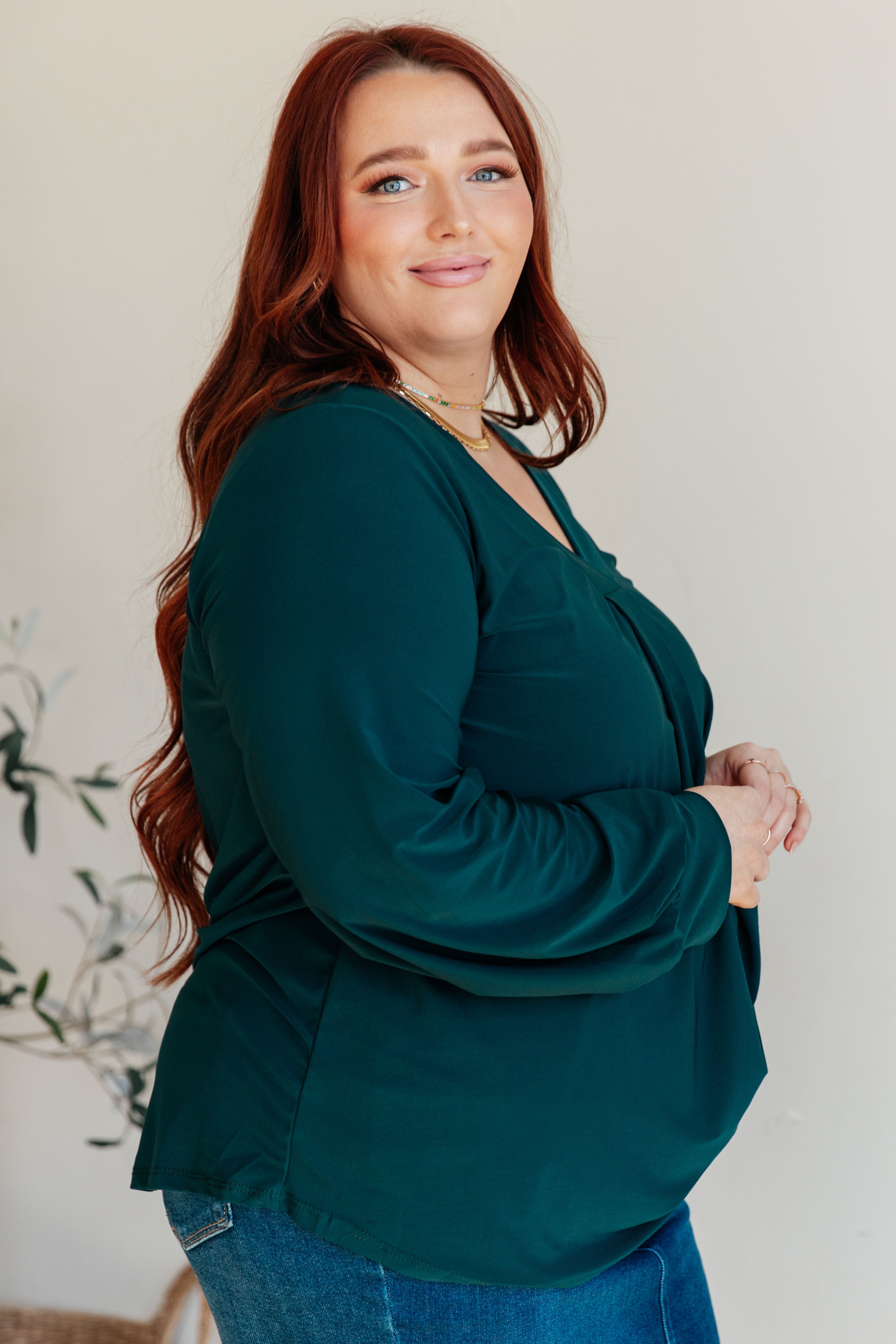 It's a little bit funny, the feeling inside when you wear the This is Your Song Balloon Sleeve Top! Made with cooling, wrinkle-resistant fabric, this V-neck top features a pleated center and balloon sleeves for a stylish twist. With a comfortable, high-stretch fit, this top gives you the freedom to move while looking effortlessly chic. It may be quite simple (now that we're done) to add this to your wardrobe!